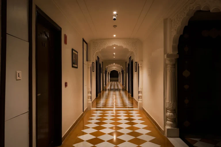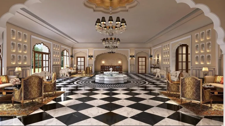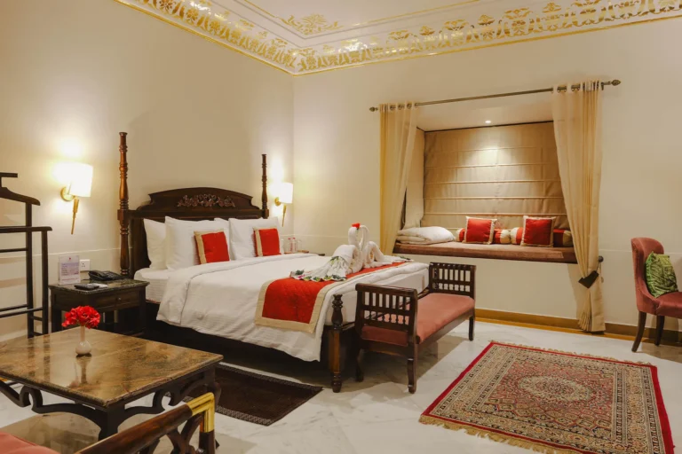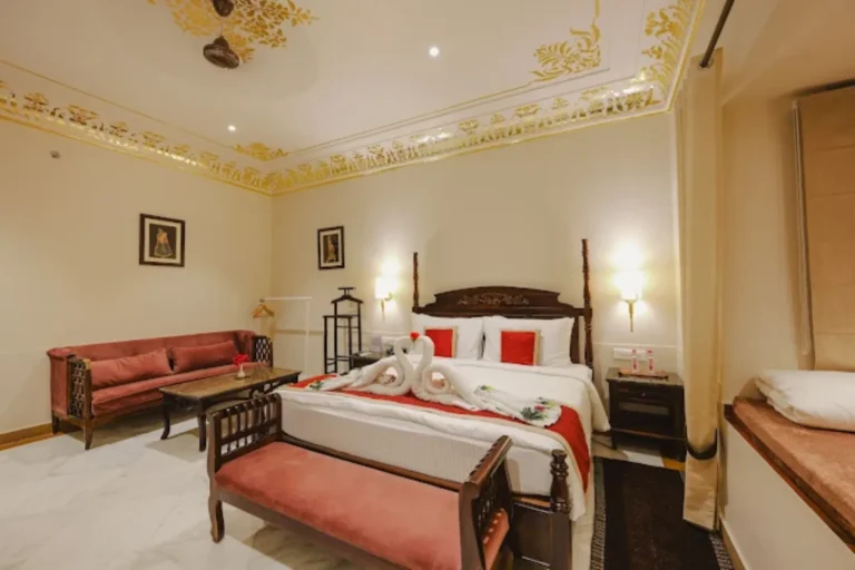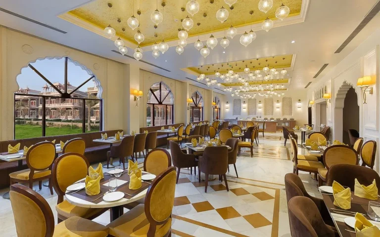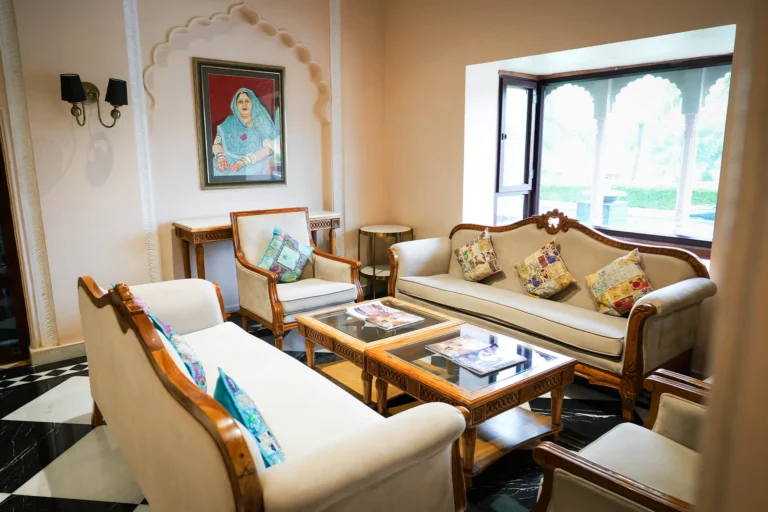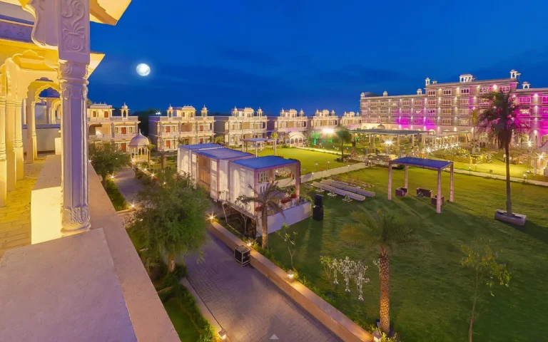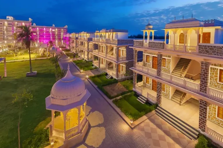 Rajasthani Architecture & Natural Surroundings: With its red sandstone exterior, traditional courtyards, and Aravalli hill views, the venue offers a perfect blend of royal heritage and nature.