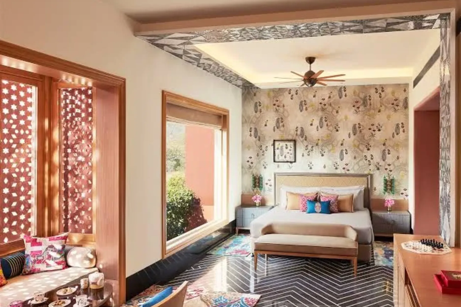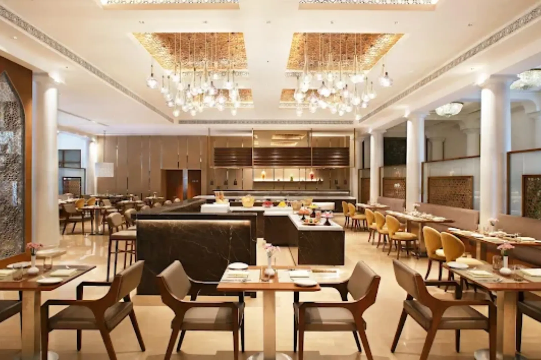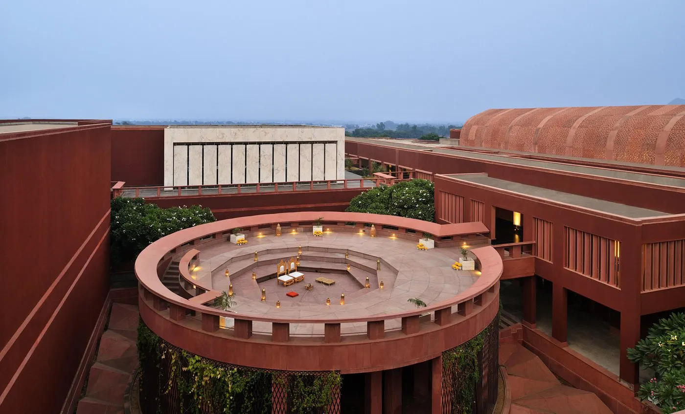 Built like a fortress with intricate jharokhas, open courtyards, and Mughal-style domes, this 5-star hotel gives your wedding a regal touch while staying grounded in comfort, warmth, and authenticity. Ideal for mid-sized destination weddings, it offers a perfect balance of luxury, affordability, and culture.